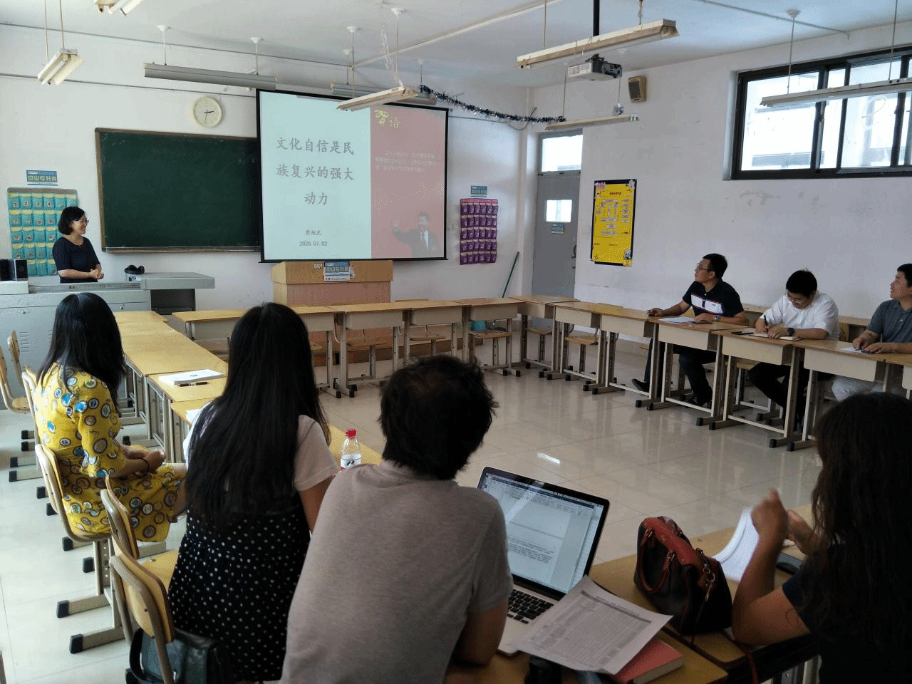 随后,全体人员集中学习了《民法典》的主要内容和重要意义,武传伟从《民法典》对课程思政、学生日常教育和管理影响的角度,进行了学习心得分享。各支部分别开展了“微党课我来讲”活动,曹旭光老师以“文化自信是民族复兴的强大动力”为题,阐述了文化自信的内涵,倡导以文化人的教育教学理念;张剑桥老师以“德才并修,从我做起”为题,分享了提升党性修养、坚定理想信念的感想。
