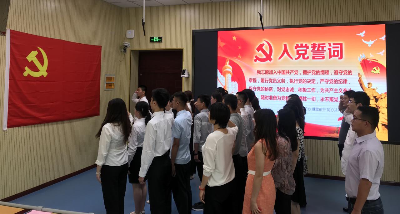 在建党99周年之际,7月11日中午,国际贸易系学生党支部在北校区第一阶梯教室举行了预备党员入党宣誓&老党员重温入党誓词活动。支部全体党员、预备党员参加了活动。