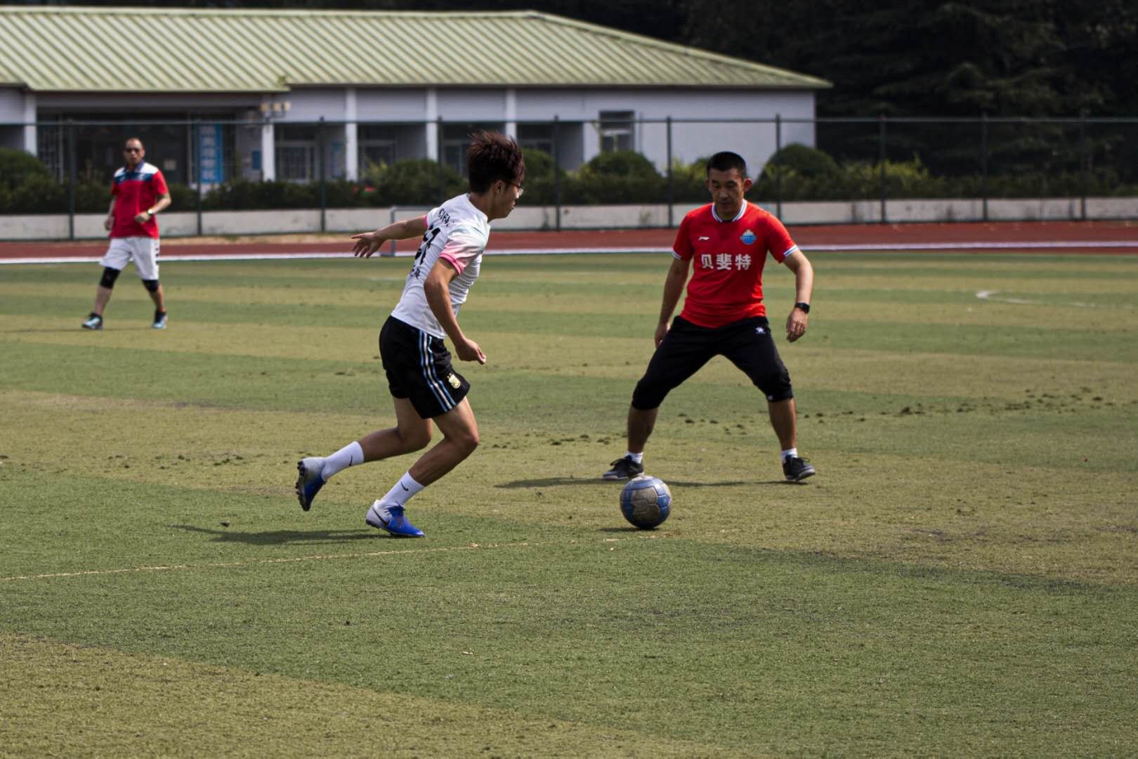 为庆祝第三十六个教师节,9月11日中午,工会和院学生会联合举办了一场师生足球友谊赛,由教工足球协会队对学生足球社团队。