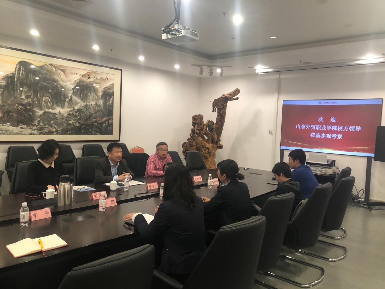 10月13日,经济管理系主任谭书旺、副主任张祖国、会展教研室主任周菲菲赴青岛国信会展酒店发展有限公司进行考察交流。公司副总经理庄丽、人力资源部经理牟晓等给予热情接待。
