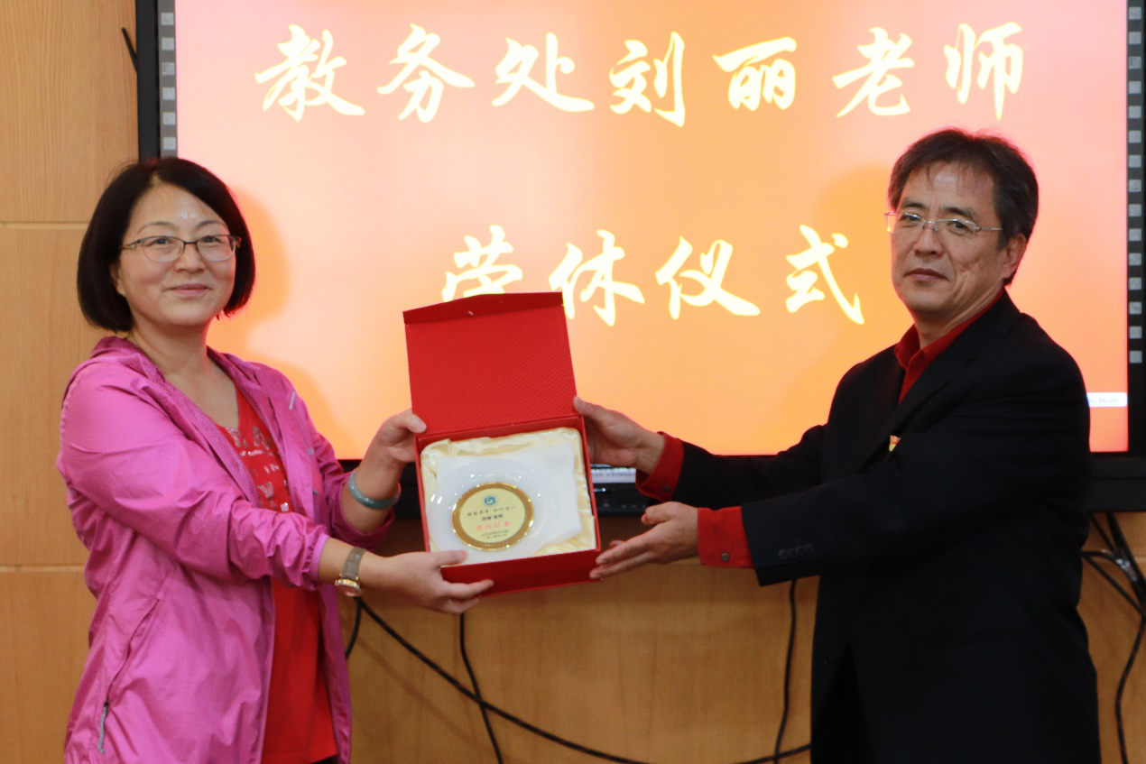 10月19日下午,教务处刘丽老师荣休仪式在行政楼二楼会议室举行,副院长周厚才、组织人事处处长韩淑君、工会副主席宋丽萍、工会办公室主任冯锟,教务处处长亓春霞以及教务处全体人员参加了仪式。