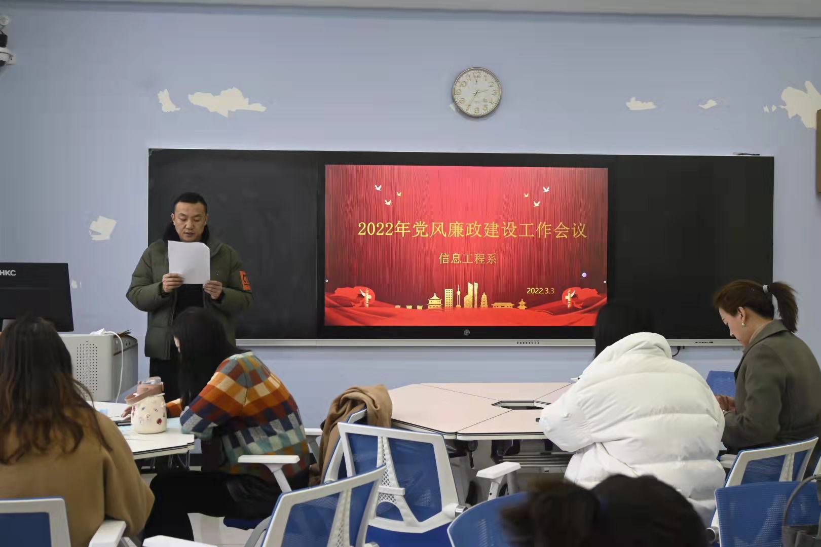 3月4日下午,信息工程系党风廉政建设工作会议暨党风廉政责任书签约仪式在李沧校区1号教学楼116教室召开,全体教师参会,会议由系党总支书记梁政委主持。