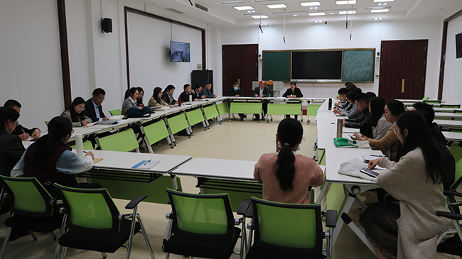 10月27日下午,泰安新校区学工处在智慧教室组织召开学生工作座谈会。学院副院长周厚才、教学部党委书记白珣、主任位思清、21个教学班的辅导员和班主任以及学院专升本宣讲负责人参加会议。