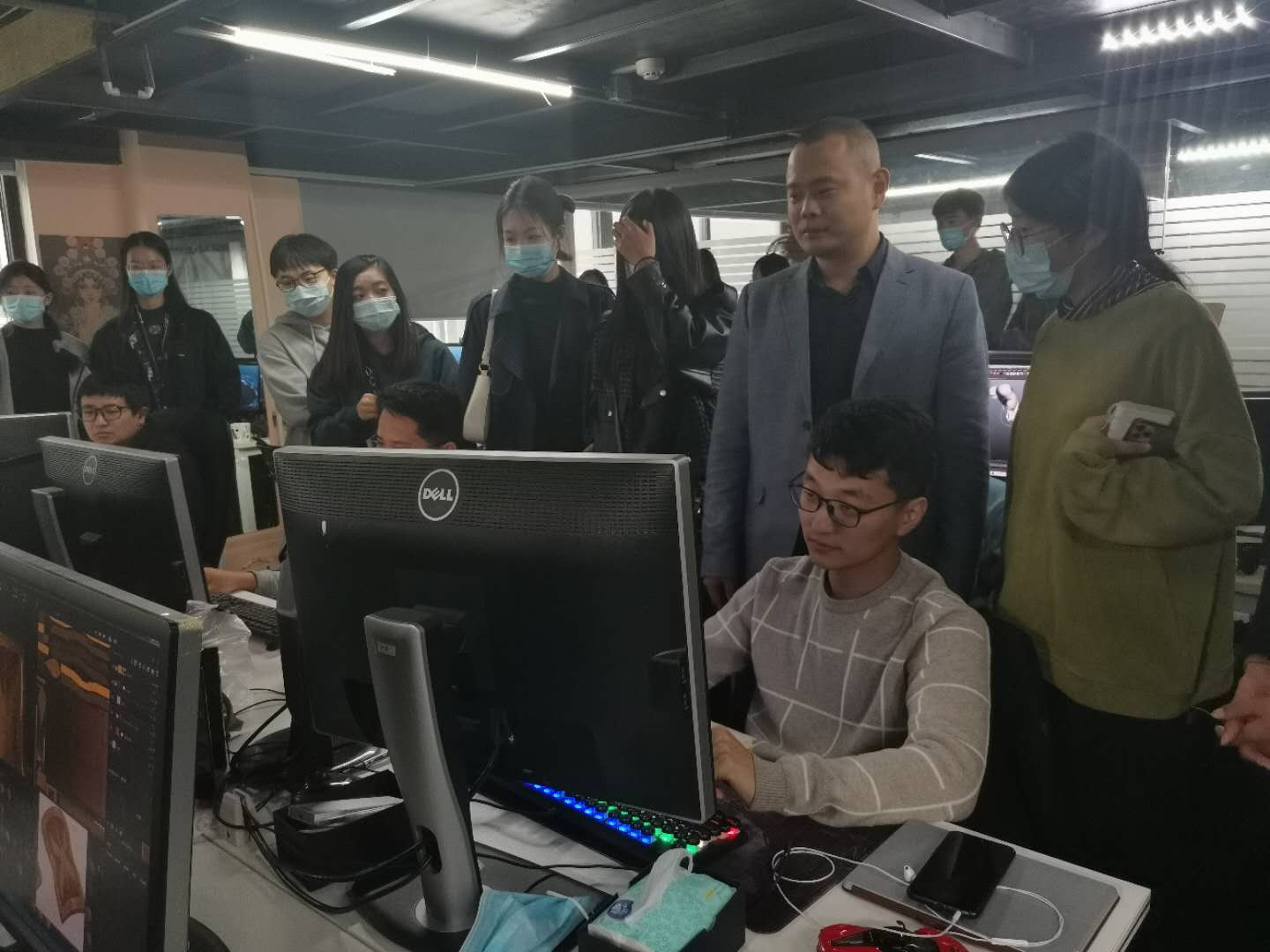 在公司相关人员的带领下,学生对公司进行参观,深入项目部门和现场与企业工作人员进行近距离交流,企业员工对学生提出的在学校学习中遇到的问题进行了解答,让学生们对相关商业制作项目有了深入的认知。
