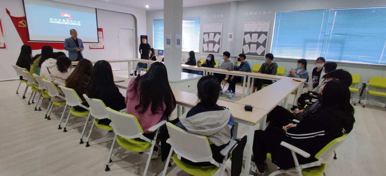 实地参观结束后,青岛艺薯数码科技有限公司安排了座谈交流会会,企业实习负责人田学慧、项目总监荆敏先后与同学们分享工作、就业、职业规划的心得,引导学生努力夯实专业基础,找准自己的定位、做好职业规划。