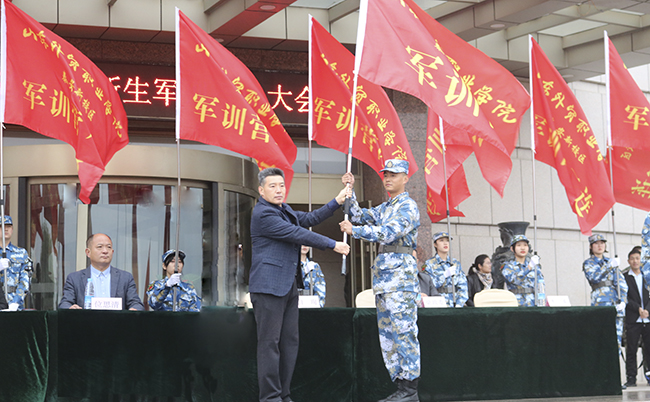 动员大会在雄壮的国歌声中拉开序幕,主持人宣读了军训营建制,白珣为军训营营长王盛授旗,王盛为十个连的连长依次授旗;国贸1班学生张子萱发言,代表全体学生表达了认真参加军训的信心和决心;位思清讲话,强调了学生参加军训的意义,对学生要认真上好军训第一课提出要求。