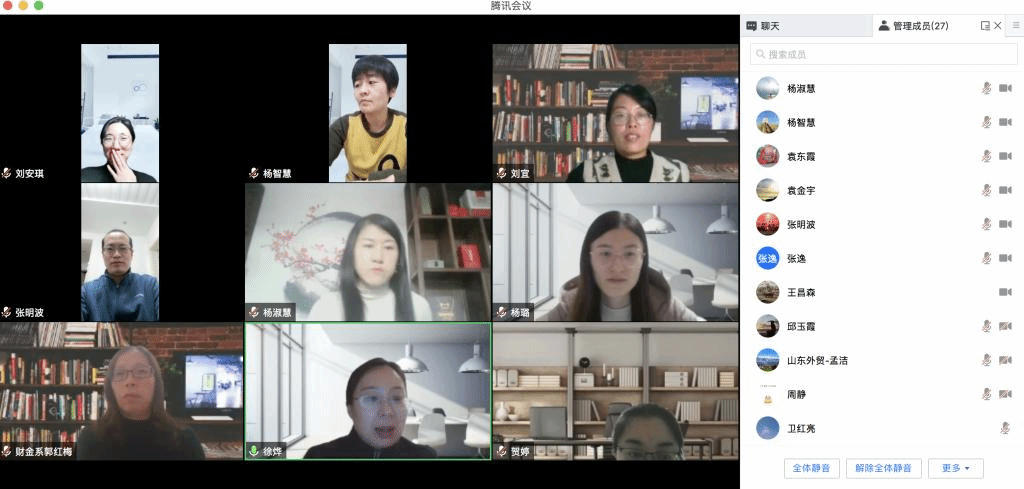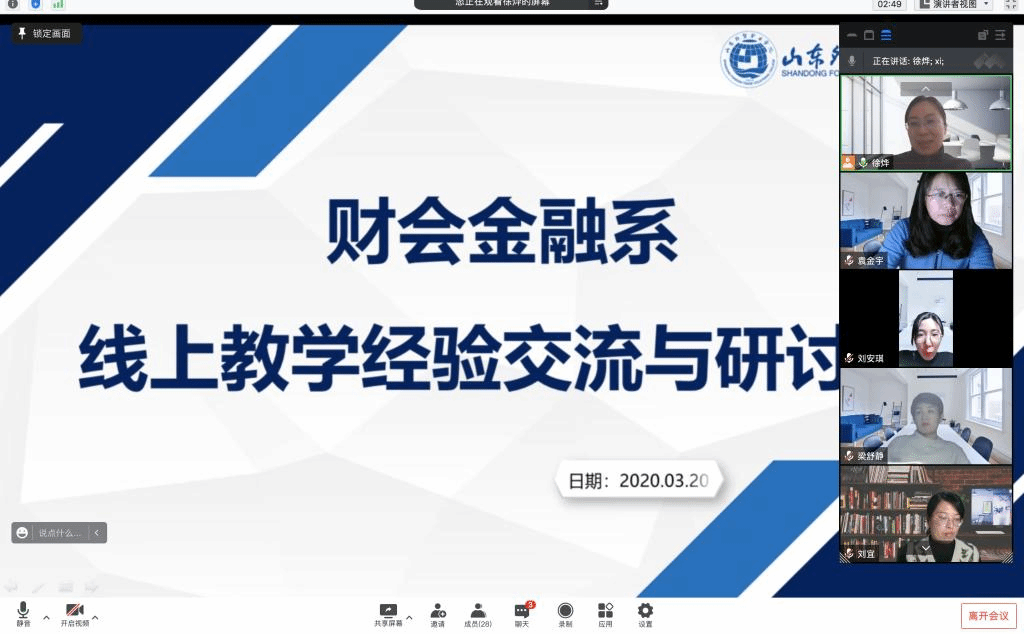 财会金融系在线上教学的第一周及时开展了“线上教学研讨会”,杨璐、杨淑慧、刘宜、贺婷婷老师进行了线上教学工具和课程设计方案的经验分享,与会老师积极探讨了各种直播工具的使用技巧以及如何更好地设计课程教学环节。