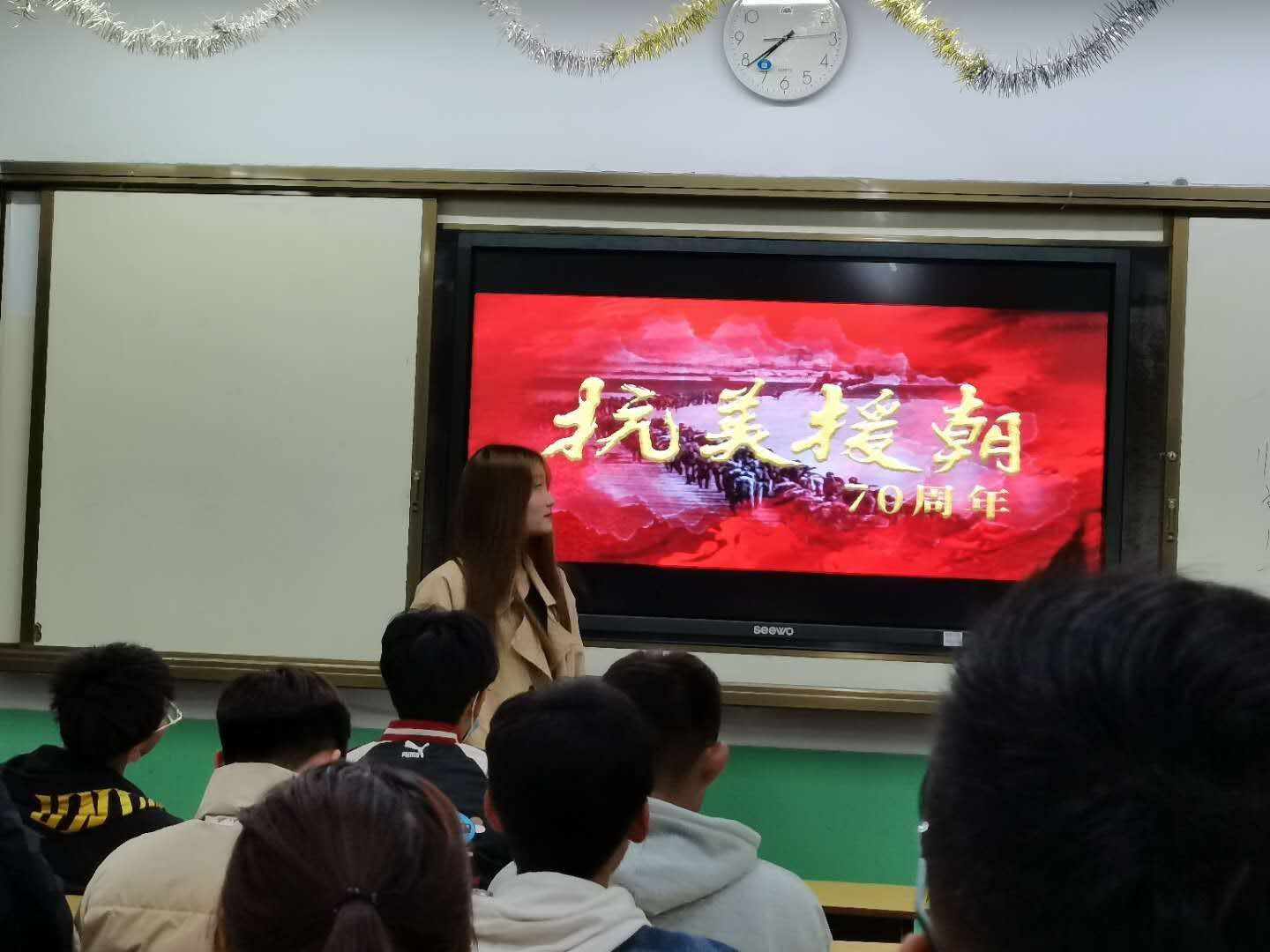为进一步做好青年学生的思想引领和价值引领工作,结合习近平总书记在纪念中国人民志愿军抗美援朝出国作战70周年大会上的讲话等内容,团委在11月组织了秋季学期第二期团课活动。