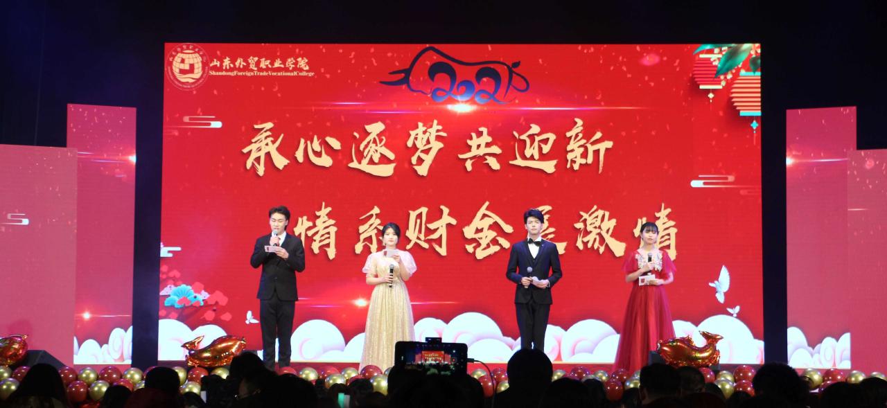12月23日晚,财会金融系在文体中心举办2021年“承心逐梦共迎新,情系财金展激情”元旦晚会。国际运输与物流系党总支书记武传伟,国际贸易系副主任王泓博、团总支书记桑伟,财会金融系党总支书记孙茂峰、主任卢吉强,副主任肖长征、徐烨,辅导员、班主任和任课教师代表、校友代表及在校生共800余人参加了晚会。