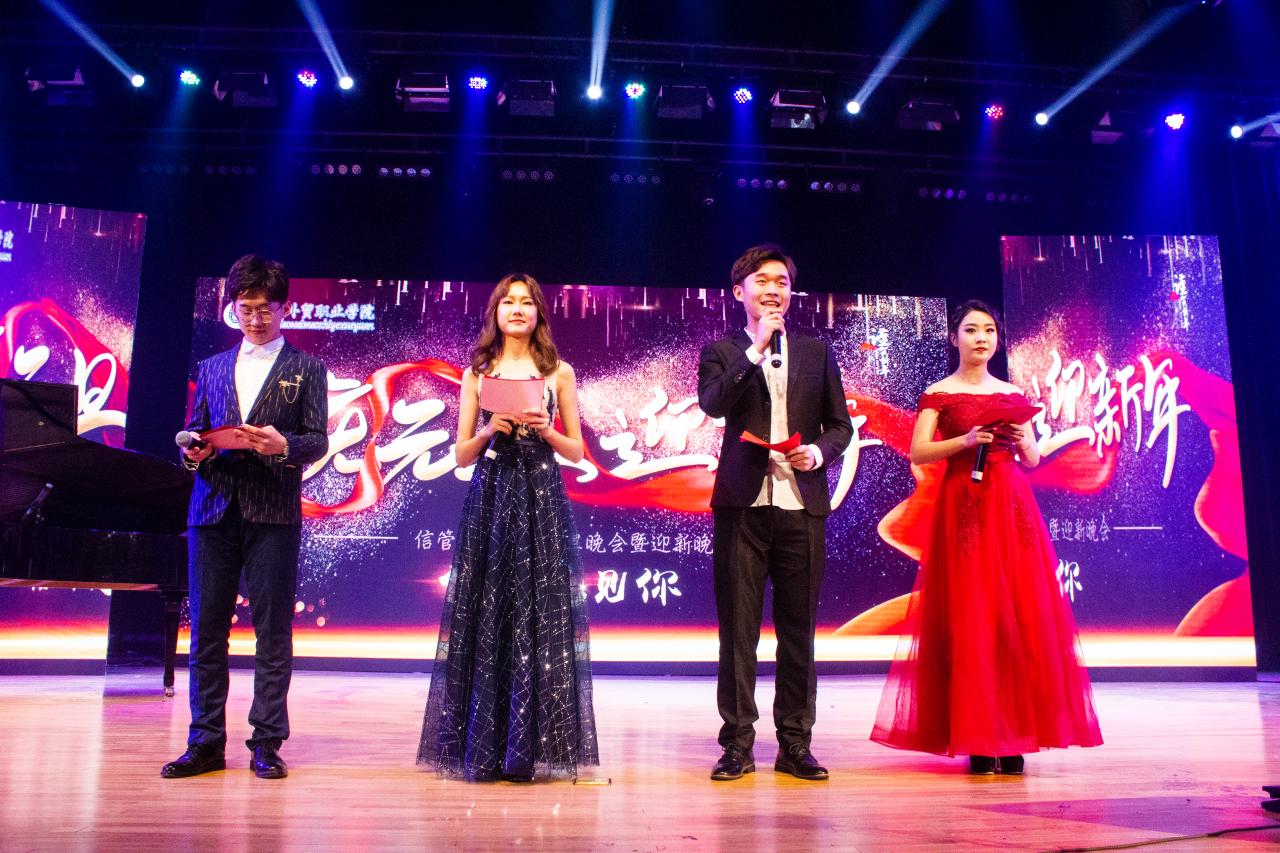 12月25日晚,信息管理系“信好遇见你”2019年迎新暨元旦文艺晚会在学院文体中心举行。信息管理系党总支书记李军,副主任刘晓飞、肖长征、莫新平,辅导员代表,2018级全体新生以及各部门系部受邀嘉宾参加了本次晚会。