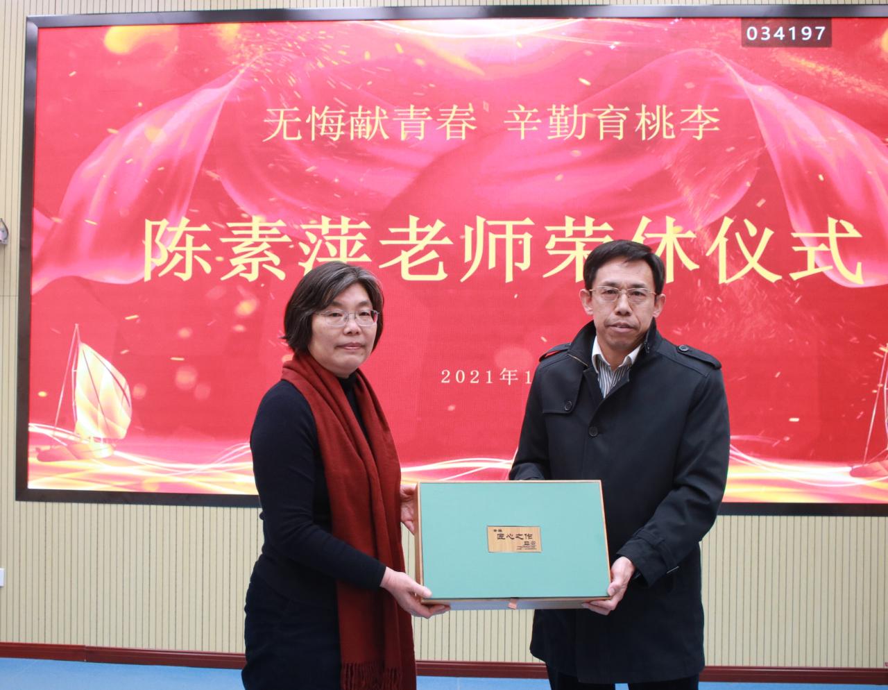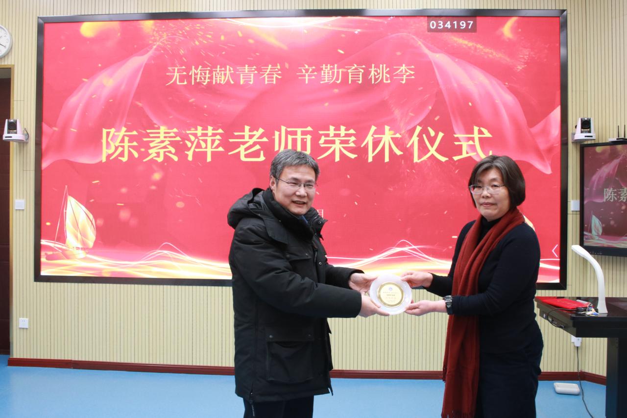 1月15日下午,商务外语系陈素萍老师荣休仪式在一号教学楼第一阶梯教室举行,工会主席张延伟,院长助理、党委院长办公室主任陈祥国,组织人事处副处长张清波,工会办公室主任冯锟,商务外语系党政领导及全体教师参加了仪式。