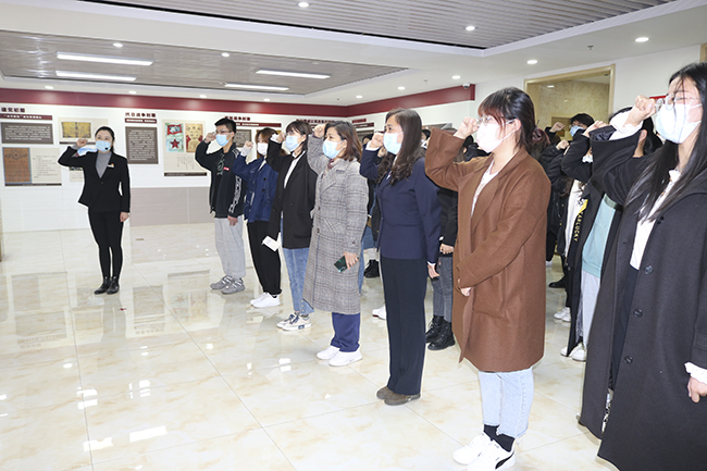 为深入贯彻落实习近平总书记在党史学习教育动员大会上的重要讲话精神,学党史、悟思想、办实事、开新局,以优异成绩迎接建党一百周年,3月11日下午,泰安新校区组织学生会干部及青年马克思主义学习社团所有成员共51名学生到泰安主题党日活动中心,开展“击鼓再奋战、攻坚当先锋”主题党日活动,新校区思想政治课教师邵玲、满丽两位老师带队参加了此次活动。