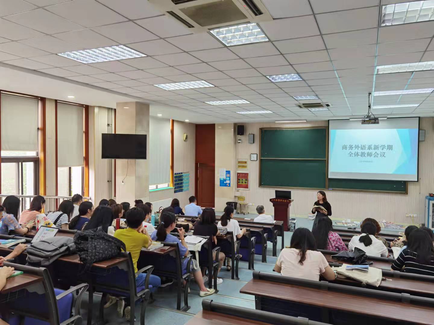 8月29日上午,商务外语系在A1阶梯教室召开新学期全体教师会议,商务外语系党政领导、全体教师参加了会议。