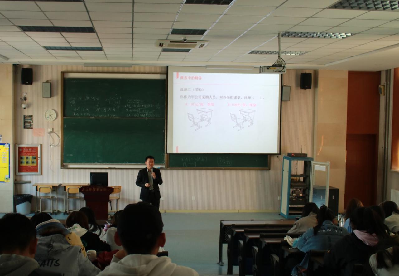 李新刚首先阐述了财务在日常工作和生活中的重要性,随后从发票对商务活动的影响、结算方式对商务活动的影响和跨境并购对财务的依赖等三个方面深入浅出地分析了财务在涉外商务活动中的重要作用;他还简要介绍了与财务相关的涉外职业,并就如何学习财务知识向同学们提出了中肯的建议。