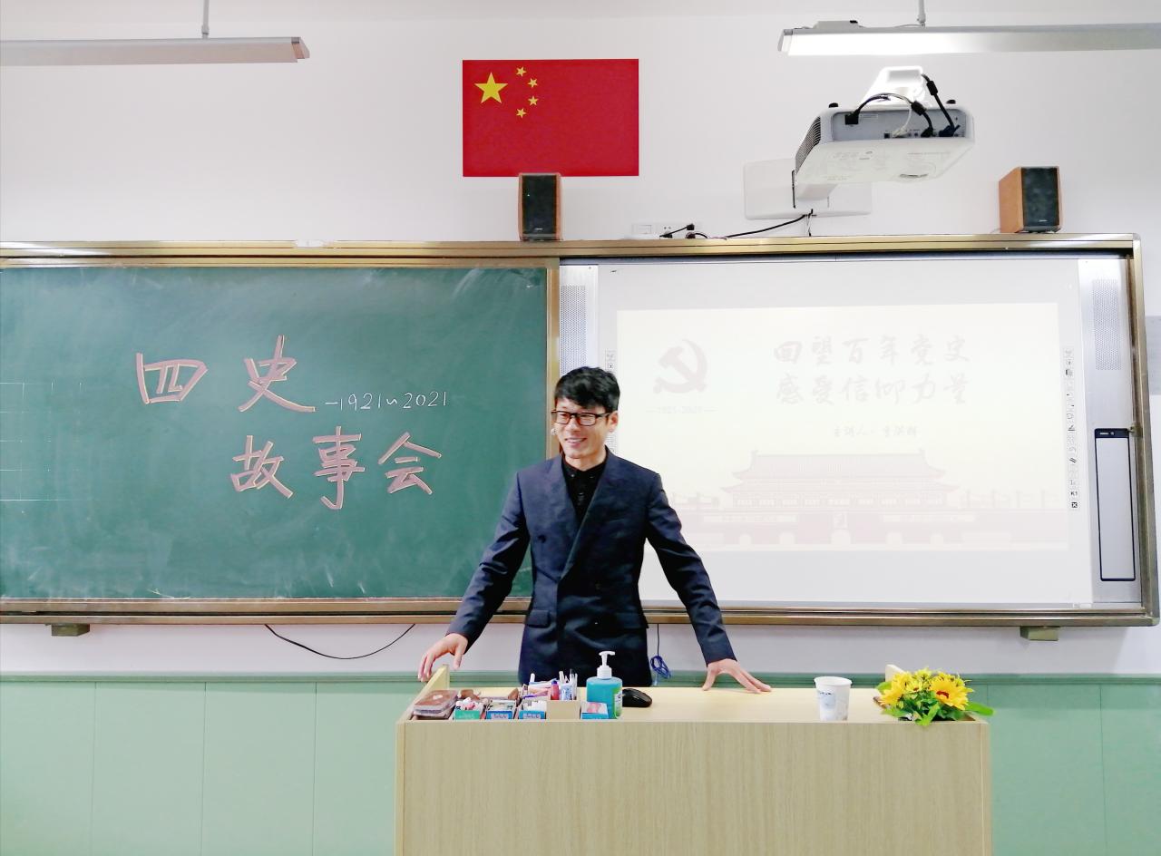 4月12日下午,伟德思想政治理论教学部副主任季洪辉到青岛大学附属中学(天山校区)为该校初二20班的同学们作了一场党史教育报告。