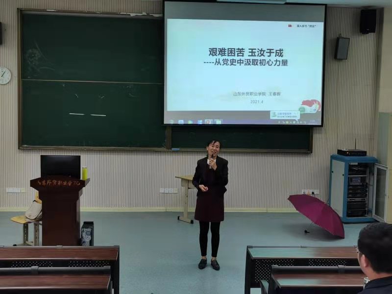 4月22日下午,青年马克思主义理论学习社(以下简称“青马社”)在2号教学楼A2阶梯教室举行党史学习辅导讲座,思想政治理论教学部(以下简称“思政部”)指导教师及全体社员参加,思政部教师王春晖担任主讲。