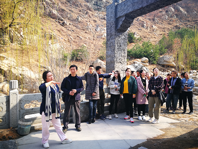 3月20日,泰安校区旅游管理教研室教师王韶燏组织校区2016级旅游管理专业学生赴中华泰山封禅大典文化街、普照寺、天外村广场开展《泰山文化》课程现场教学,班主任及教研室教师一同参加现场教学活动。