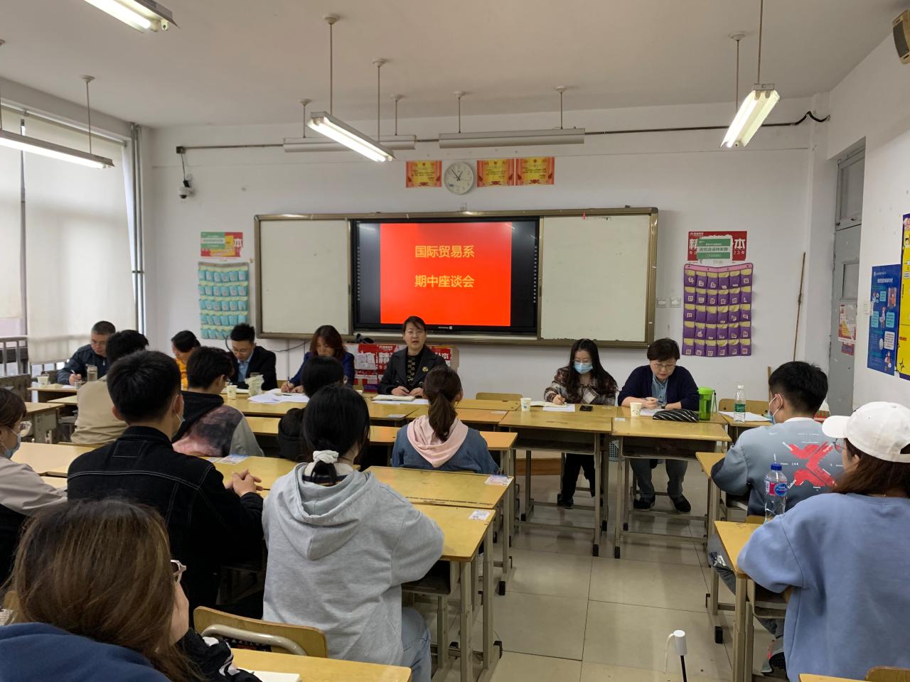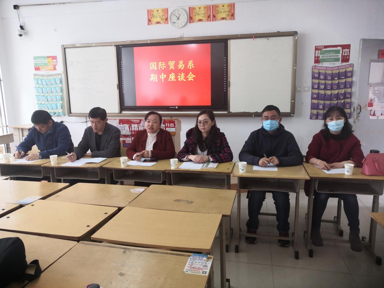 为及时发现和解决教学工作中存在的问题,促进教学质量和管理水平的提高,4月22日和23日,国际贸易系分别面向2019级、2020级学生召开了两次期中教学检查座谈会。国际贸易系主任刘珉,副主任张宗英及教务处、公英部、基础部、思政部等相关教师参加了座谈会。