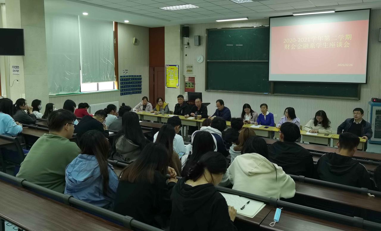 4月26日,财会金融系在2号教学楼A2教室召开2020-2021学年第二学期期中学生座谈会。学院相关部门负责老师,财会金融系党总支书记孙茂峰、主任卢吉强、教研室主任、辅导员、学生代表参加了座谈会。