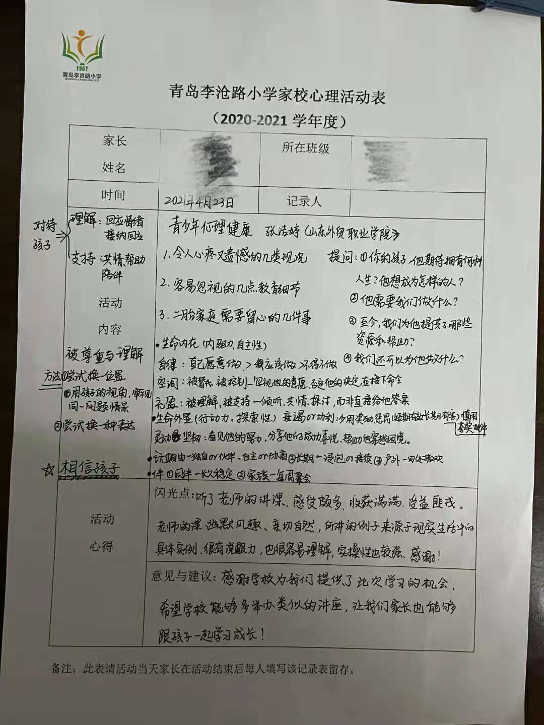 近日,伟德学生工作处心理咨询中心张洁婷受邀到李沧路小学为学生家长开展了一场亲子教育心理健康讲座。张洁婷针对目前该校心理工作中最为关注的二胎亲子关系问题,面向家长以《二胎家庭的家庭教育与亲子关系》为题,从令人遗憾的一些教育现况入手,点明了日常生活中容易被忽视的教育细节,深入浅出的解读了它们的成因、影响,给出了简单可行的具体改善方法。讲座现场互动热烈、气氛温馨。讲座后,张洁婷又分别回应了一些家长在亲子养育方面的困难问题。