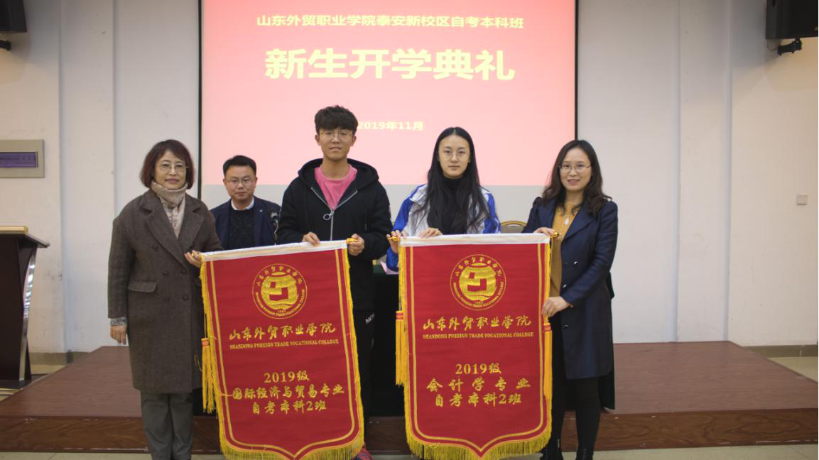 开学典礼上,覃翠英介绍了学院自考本科的发展历程、取得的成绩以及学院的助学措施和对学生的奖励办法,勉励各位同学及时调整心态,增强自信,发扬吃苦耐劳的精神,不忘初心,努力实现自己的梦想。同时,她还表示继续教育处将不断提升管理和服务水平,助力更多同学成长成才。魏玉也勉励同学们珍惜时间,刻苦学习,争取早日拿到本科毕业证书。典礼最后,覃翠英和魏玉共同为自考本科新生班授予班旗。
