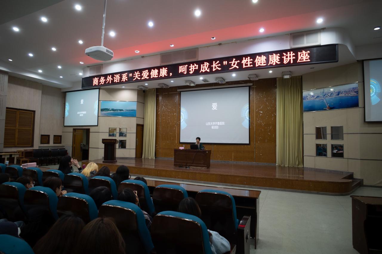 为提高女大学生的保健健康知识水平,增强自我防护意识,促进女大学生身心健康,5月23日晚,商务外语系邀请山东大学齐鲁医院产科副主任侯灵彤做了一场题为“呵护健康 关爱成长”的女生健康教育讲座,系党总支书记刘永美主持本次讲座,19级和20级全体女生参与了本次讲座。