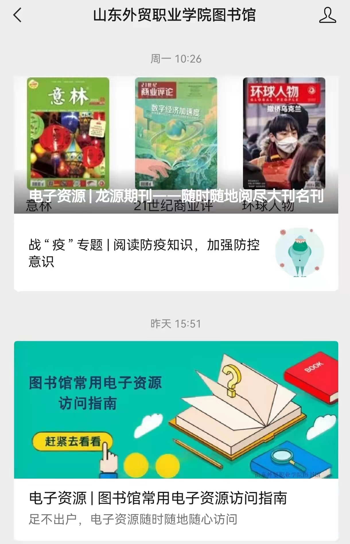 自校园封闭管理以来,图书馆积极响应学院疫情防控工作要求,严格落实疫情防控措施,加大线上宣传和推广力度,坚持线上服务不打烊,全力做好疫情时期师生读者服务工作。