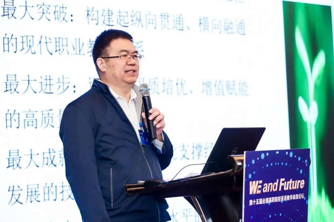 教育部职业院校外语类专业教学指导委员会主任委员、伟德院长刁建东在开幕式上致辞。论坛围绕新发布的《高等职业教育专科英语课程标准(2021年版)》、外语教学的任务、育人路径、人才培养模式、产学研一体化等议题展开。