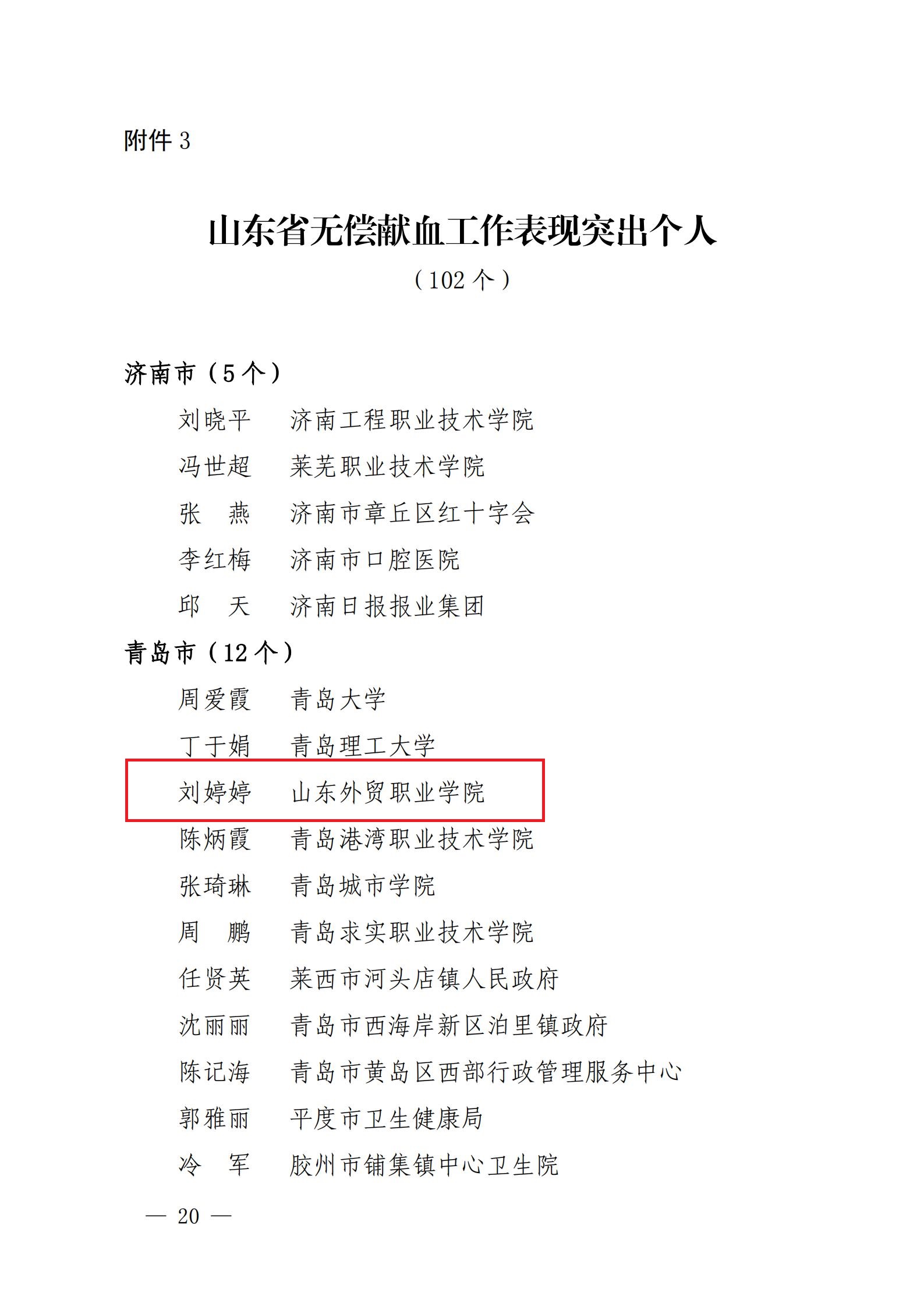 近日,伟德在山东省卫生健康委员会等部门开展的2019-2020年度山东省无偿献血表彰工作中荣获“山东省无偿献血组织表现突出单位”荣誉称号,团委刘婷婷荣获“无偿献血工作表现突出个人”。
