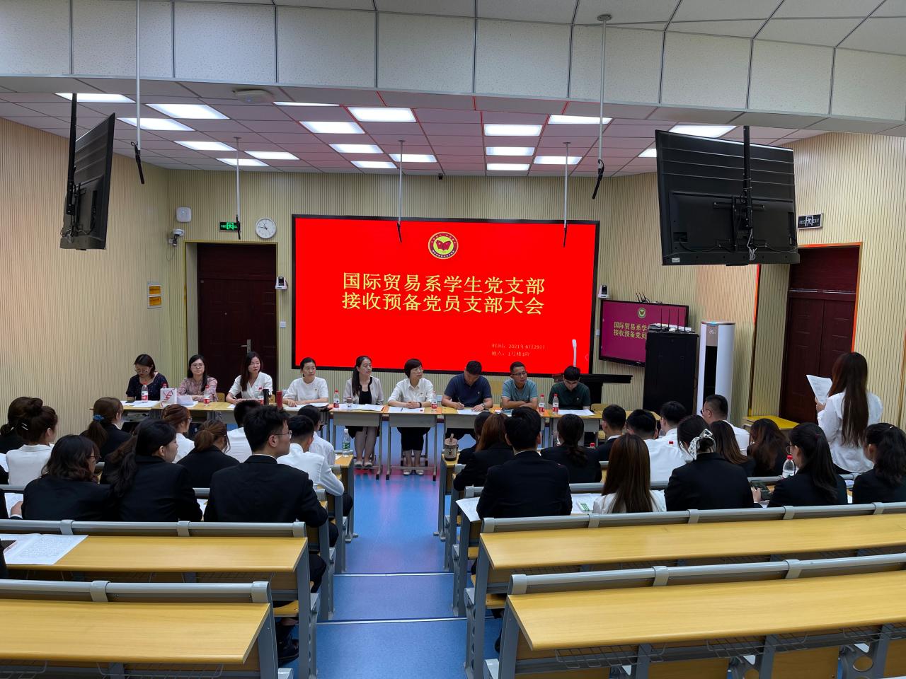 6月29日,国际贸易系学生党支部举行党员发展大会。会议由国际贸易系学生党支部书记肖敏主持,支部全体党员、40名党员发展对象参加会议。