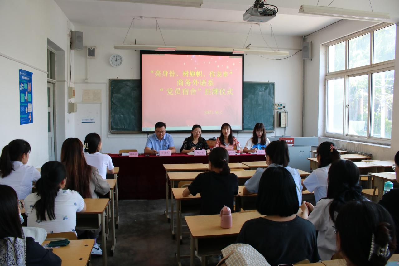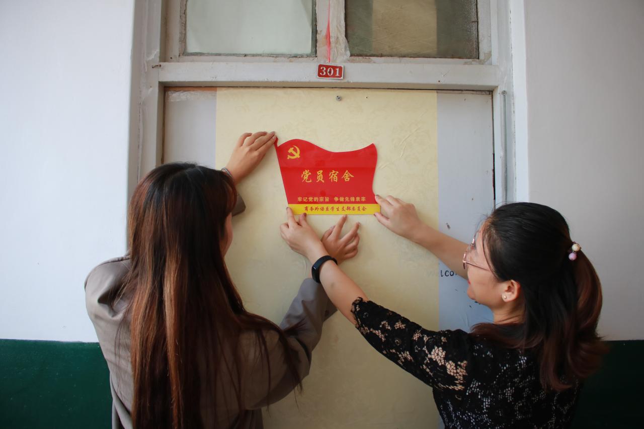 为营造积极健康的校园文化环境,促进宿舍文明建设,充分发挥学生党员的模范带头作用。9月2日下午,商务外语系学生党支部在江西路校区开展了党员宿舍挂牌活动,商务外语系党总支书记刘永美、学生工作办公室主任张清波和学生党支部全体师生党员、学生代表参与了本次活动。