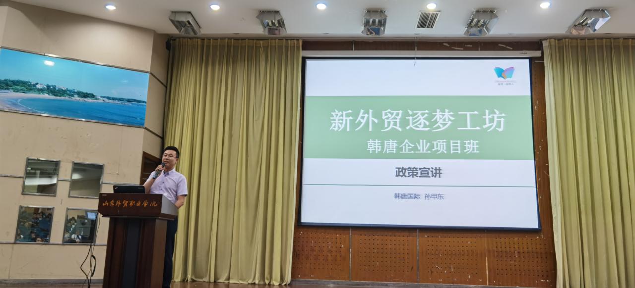 9月2日,国际贸易系在学术报告厅举办“新外贸逐梦工坊”韩唐企业项目班宣讲会,国际贸易系行政临时负责人程炜杰,青岛韩唐国际医疗健康产业有限公司总经理邓帆、合伙人孙甲东,国际贸易系部分辅导员,2022届部分毕业生参加了宣讲会。