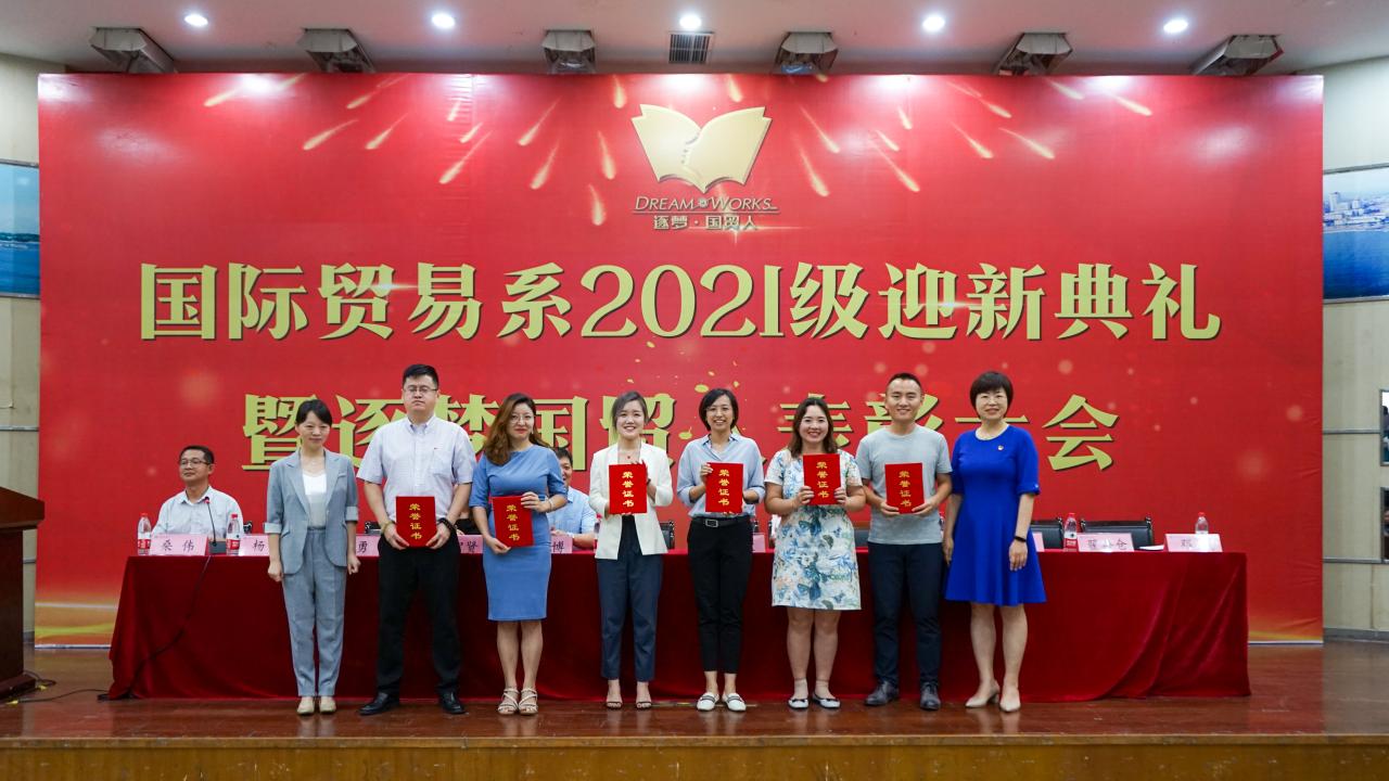 9月5日下午,国际贸易系2021级迎新典礼暨逐梦国贸人表彰大会在学术报告厅举行,一教一阶同步转播。国际贸易系党政领导班子、2021级新生辅导员、新生班主任、企业导师班主任、全体新生及2019级、2020级学生代表参加了大会。会议由系团总支书记桑伟主持。