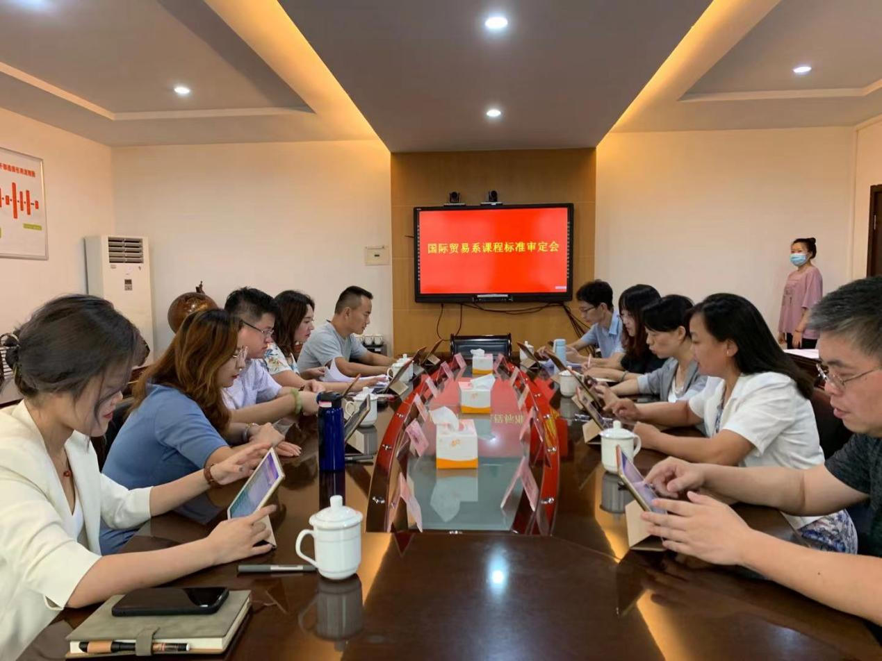 9月5日,国际贸易系在行政楼201召开国际经济与贸易专业和国际商务专业课程标准审定会,会议由国际贸易系行政临时负责人程炜杰主持,副主任张宗英、孙智贤,部分企业专家代表及教研室主任参加了会议。