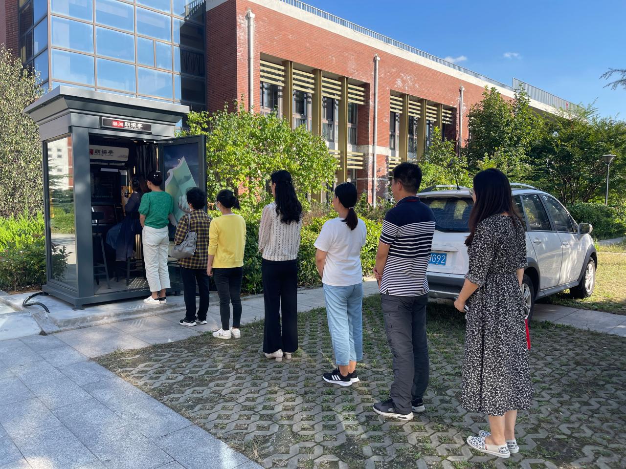 本次主题党日活动在学院图书馆馨悦朗读亭举行。借助朗读亭这一新的文化传播形式,倡导党员干部阅读红色经典,赓续红色血脉,以特殊的形式让党史“声”入人心。活动之前,各位党员精心挑选篇目,反复练习,分别诵读了《祖国啊,我亲爱的祖国》、《中华,中华》、《可爱的中国》、《我爱这土地》等红色经典篇目,用饱含激情的声音表达对党和祖国的祝福。