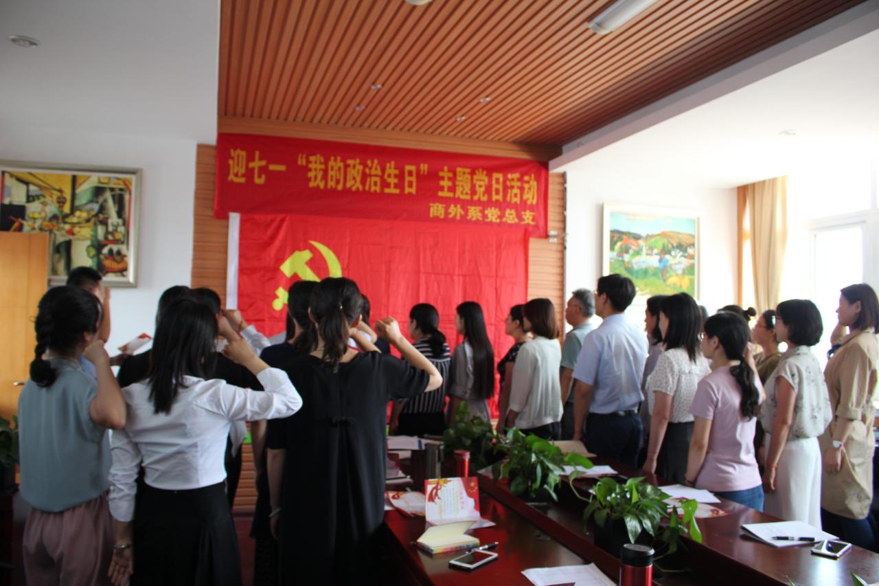 7月1日下午,商务外语系党总支在2号教学楼B406召开了迎七一“我的政治生日”主题党日活动,总支全体党员参加了活动,学院副院长周厚才作为系部联系人受邀参加。