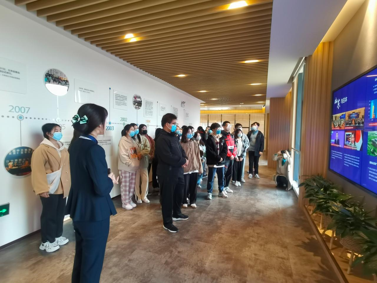 活动中,“国际客厅”的工作人员和讲解员带领师生参观了展厅,并且通过互动、演示等方式,让学生了解了国际客厅的发展理念和取得的成绩。参观结束之后,同学们纷纷表示,此次参观实践活动让他们认识了青岛对日国际交流合作的全新平台,体验了青岛开放包容和高水平对外开放的发展情况,激发了他们学好日语知识的兴趣。