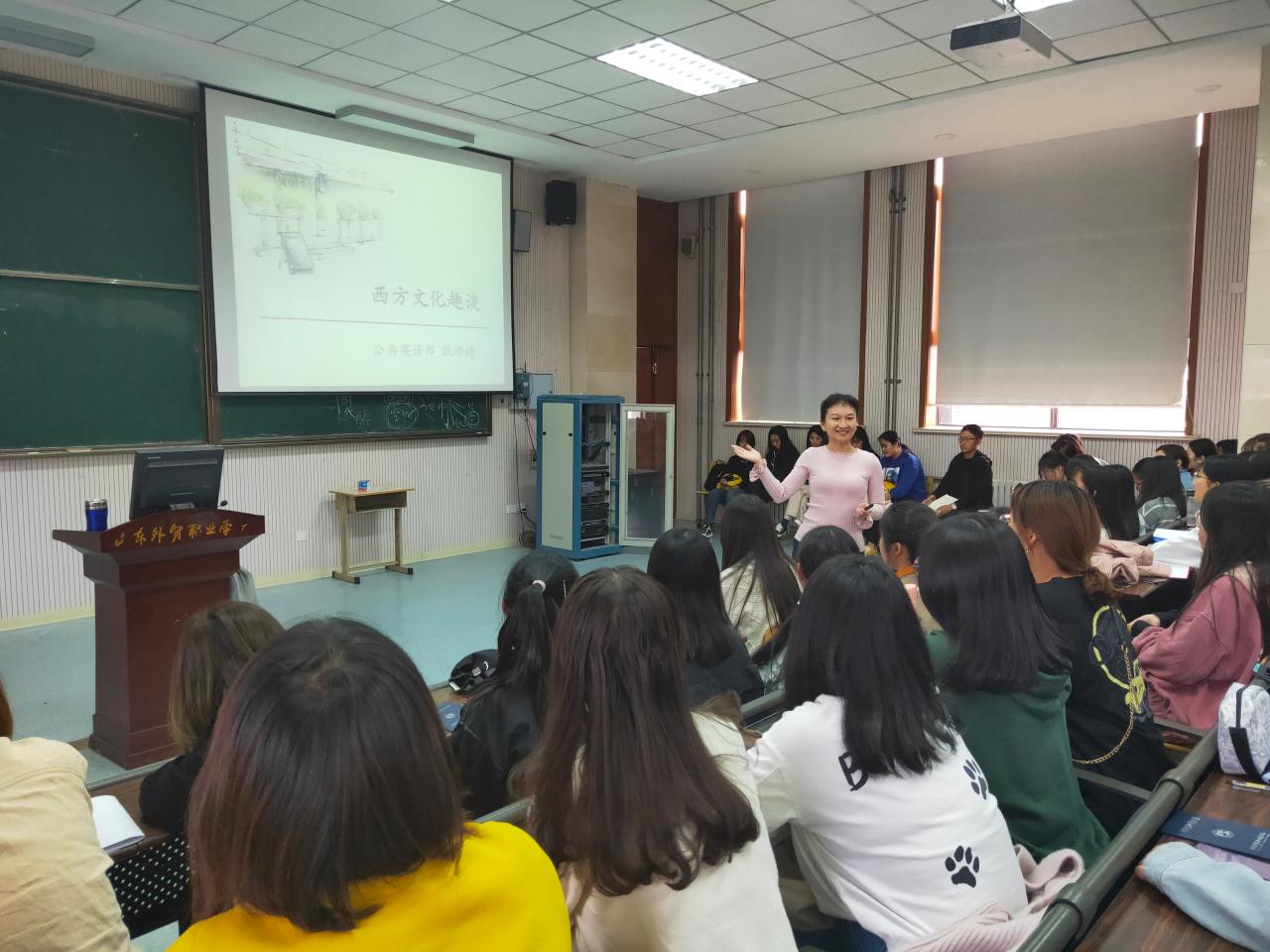 10月17日下午,公共英语部教师甄婷婷在2号教学楼B3阶梯教室举办了题为“西方文化趣谈”的讲座。