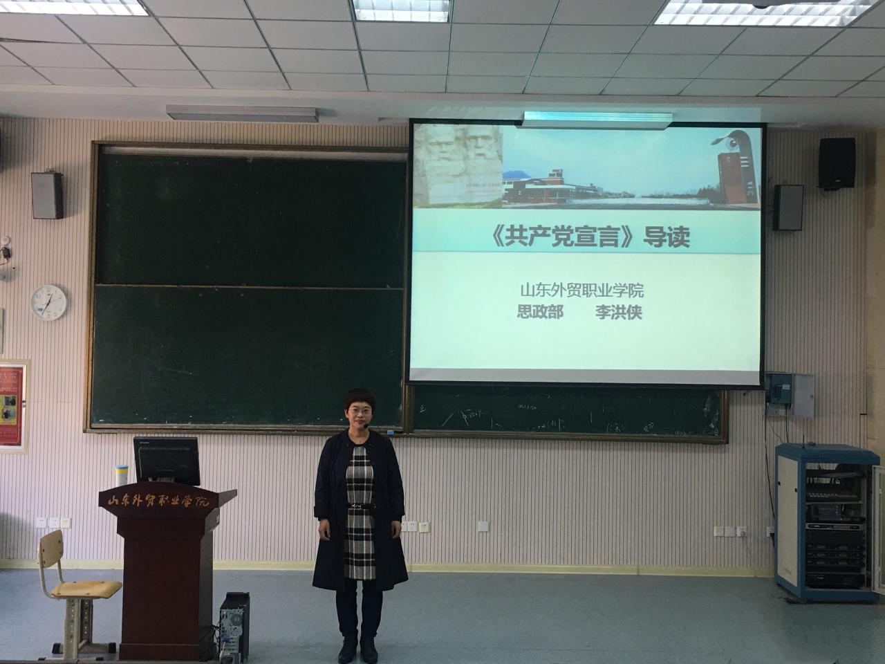 11月5日中午,思想政治理论教学部教师李洪侠在B2阶梯教室为青年马克思主义理论学习社(以下简称“青马社”)做《〈共产党宣言〉导读》理论学习辅导讲座。青马社全体社员参加。