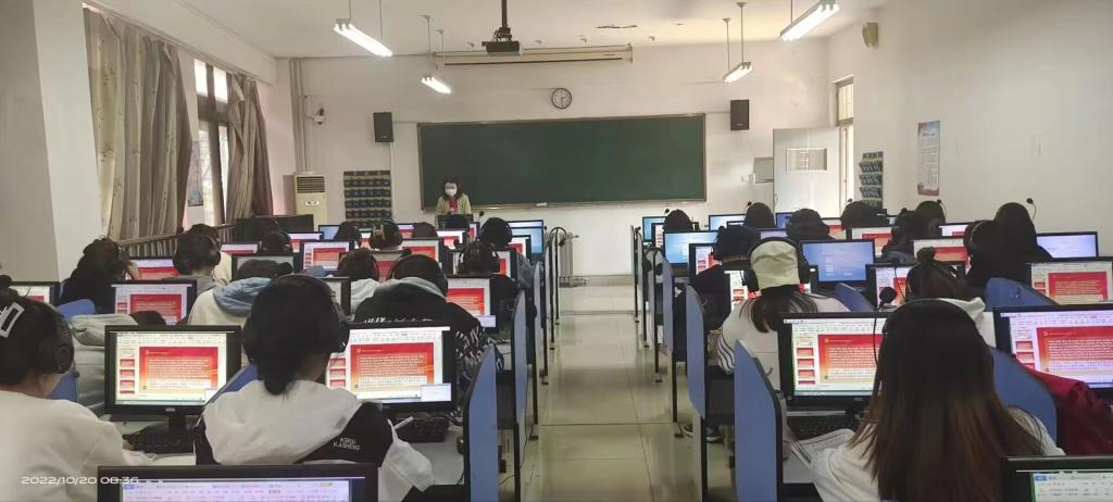 同时,各教研室围绕党的二十大相关内容展开课程思政集体备课活动。结合学生喜闻乐见的形式,教师集思广益,巧妙设计了包括问卷星测试、智能课堂抢答活动、拖拽游戏等近十种不同形式的课堂教学活动,寓教于乐,达到溶盐于水的效果。此外,公共英语部还将组织学生参加“喜迎二十大 团结奋进向未来”英文手抄报等学生活动,为学生提供更多英语展示的平台,以学生喜爱的方式,抒发对祖国和党的热爱,展现青年人朝气蓬勃的活力,用英语讲好中国故事,