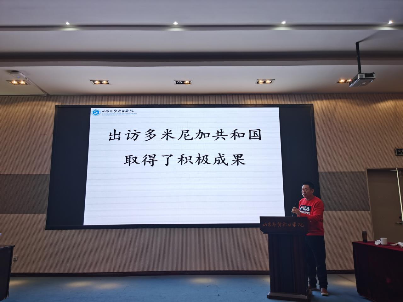 刘希全、王伟和郝冠军结合各自海外班带班工作的亲身经历,分别对“2019年格林纳达冷链物流管理海外研修班”、“2019年厄立特里亚足球、篮球、羽毛球教练海外培训班”和“2019年哥斯达黎加企业集团创新流程管理研修班”三个班的培训情况,以照片、视频和文字的形式进行了展示,让大家近距离了解了援外海外培训工作的流程、带班老师的工作和职责、学员情况和丰富多彩的异国文化。讲座生动、形象,针对性强,参加人员反映很有收获,既进行了海外带班培训,又了解了异国文化与风俗。此外,援外办丁礼章还向大家展示了院长刁建东出访多米尼加共和国和格林纳达取得的多项成果,刁建东院长此次出访,加深了伟德与两国有关机构的联系,伟德将发挥职业教育服务“一带一路”实验基地的作用,整合各类资源,切实将《协议》内容落到实处,在中多两国间孕育更加丰硕的成果。