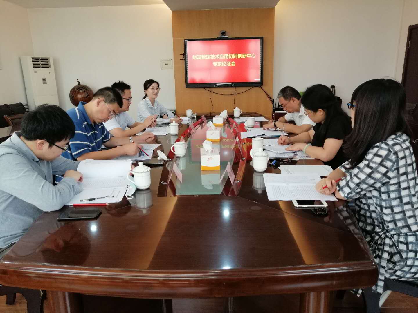 7月24日下午,财会金融系在行政楼201会议室召开财富管理应用技术协同创新中心专家论证会。青岛金水金控公司总经理林路、青岛农商行李沧支行行长于刚、青岛大学经济学院副教授张笑博士、国泰君安松岭路营业部业务总监杨小凡、财会金融系主任卢吉强、协同创新中心项目组核心成员袁金宇、刘宜、孙中平等参加了论证会。