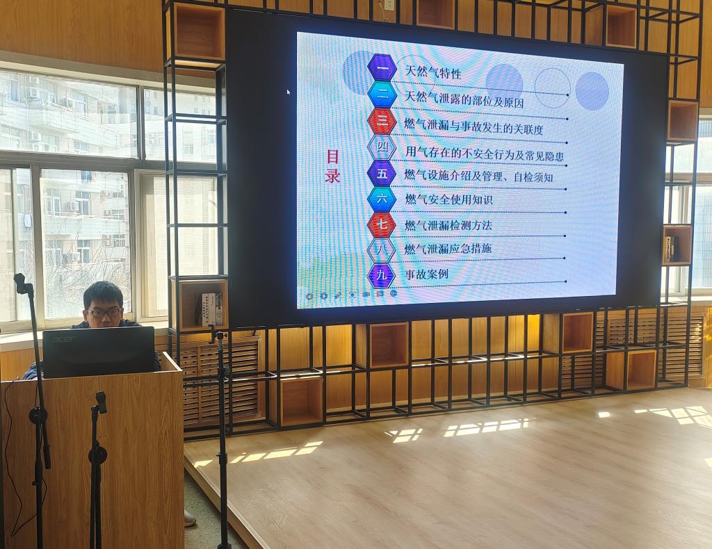 张守明从天然气安全知识、安全用气管理、燃气事故案例等方面入手,围绕着天然气的特性、安全用气使用管理规定、常见的燃气使用隐患等内容进行讲解说明,结合学校食堂操作工作岗位的性质、特点着重强调了正确规范使用燃气的重要性。结合实际案例,阐述如何做好天然气泄漏的预防措施及处理办法,讲座的内容丰富,对一线食堂员工实际操作具有较强指导和警示教育意义。