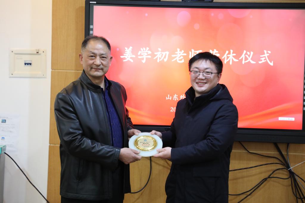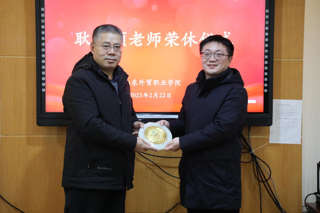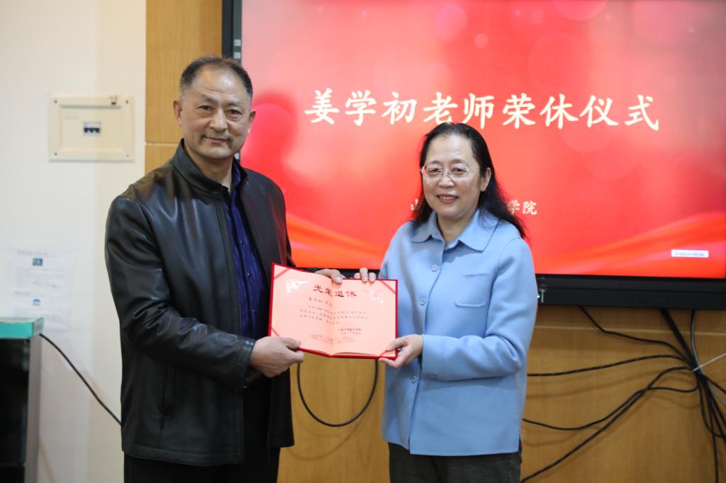 2月22日下午,姜学初、耿立顺两位老师荣休仪式在行政楼201会议室举行。副院长程巍、相关部门负责人及部门全体教职工参加仪式。