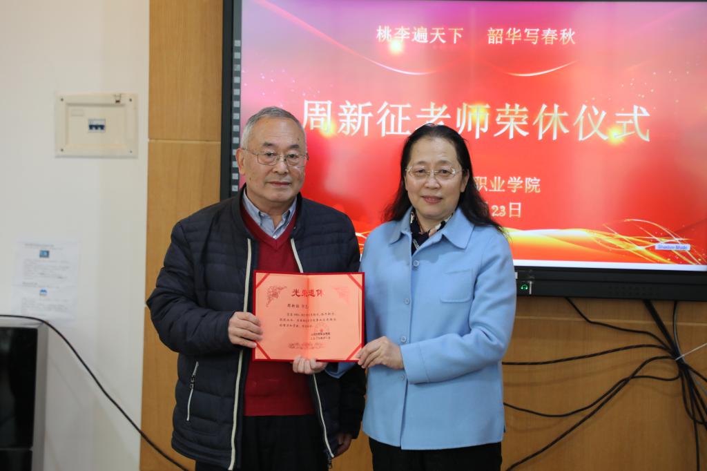 2月23日上午,离退休干部处周新征老师荣休仪式在行政楼二楼会议室举行。副院长程巍,相关部门负责人及代表参加仪式。