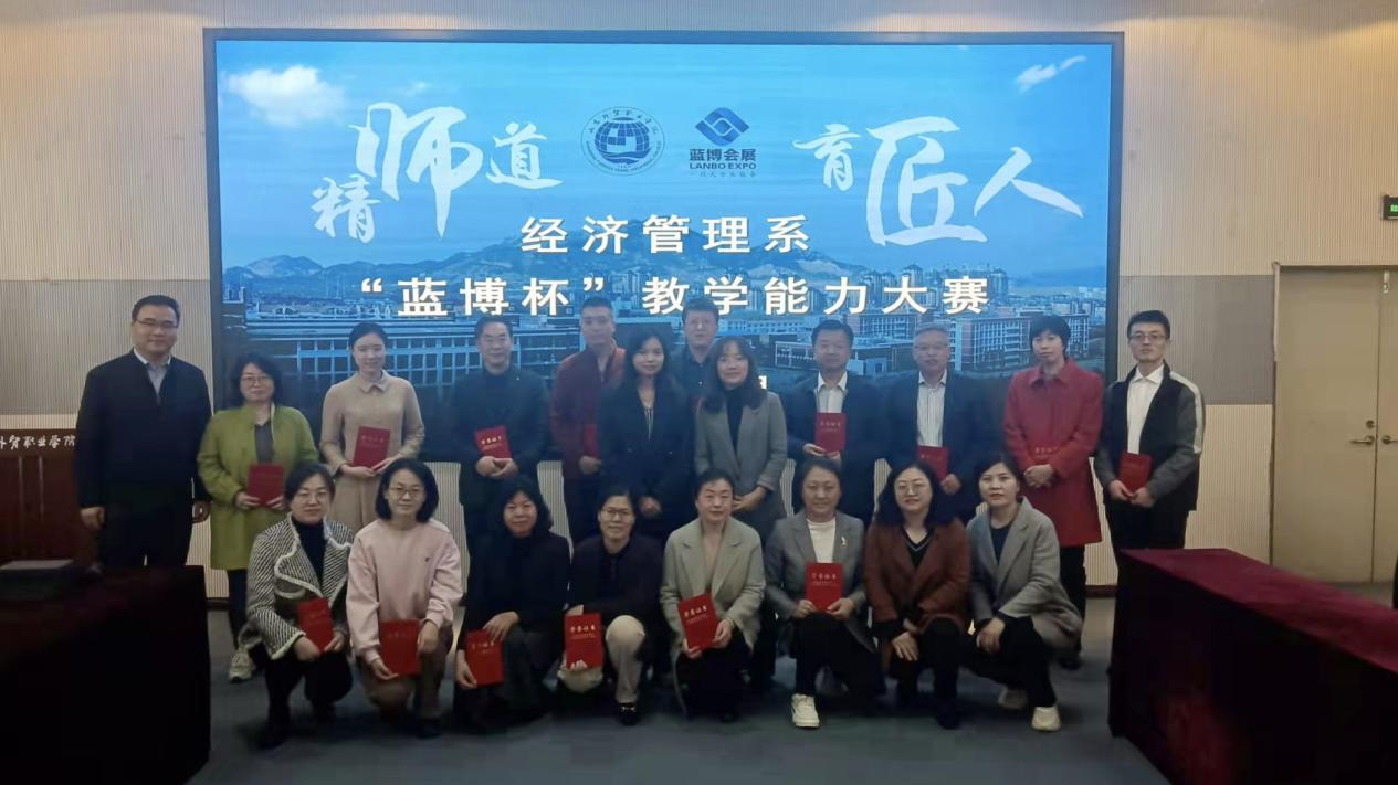 为进一步提升专业教师教学能力,促进教师专业发展,3月30日下午,经济管理系在图书馆4楼会议室举行了2023年“蓝博杯”教学能力大赛。本次比赛以“精师道,育匠人”为主题,国际贸易系副主任孙智贤副教授、公共英语部教师史悦等担任评委。