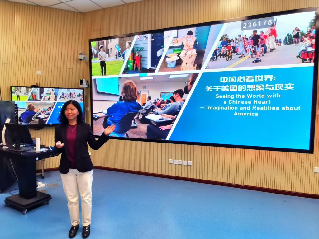 讲座中,韩佳通过图片和事例生动展示了真实的美国生活,展现了中美两国在教育理念、生活方式、价值观、思维方式等方面的差异。她还结合个人经历,讲述了中国传统文化在异国土地上展现出的巨大魅力和影响力,以及对用英语传播中华优秀传统文化的独特体会。韩佳鼓励学生在学习外语的同时,积极了解中西文化差异,提升跨文化交际能力,强调只有加深对中国传统文化的理解,增强文化认同感和自豪感,才能在未来的对外交流中更好地用英语讲好中国故事,应对未来的国际交往和跨文化沟通的挑战,向世界传递中国声音。