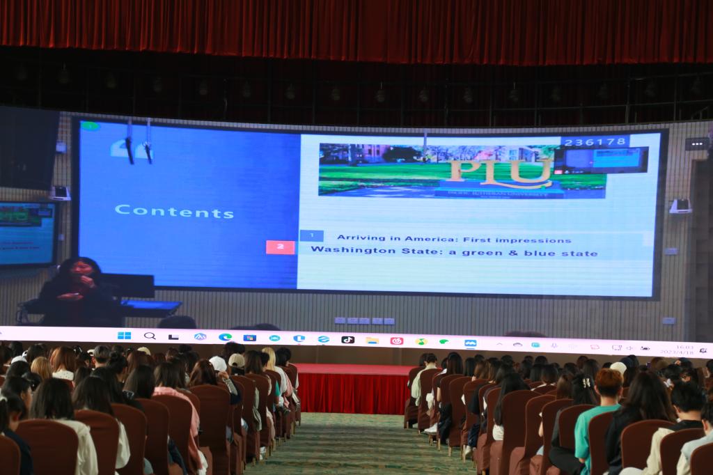 4月18日下午,第十四届英语文化节“文化体验”系列第二场讲座在青岛和泰安两校区同时举行。本次讲座由公共英语部教师韩佳主讲,主题为“中国心看世界:关于美国的想象与现实”(Seeing the World with a Chinese Heart—The Imagination and Reality about America),吸引了全院800多名学生参加。