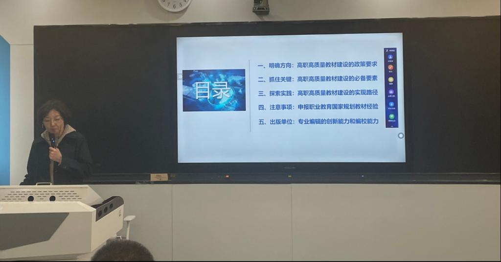 培训交流活动由教务处魏龙吉主持,出版社两位编辑专家分别围绕《职业教育规划教材编写体例分析与开发实践》与《高质量高等职业教育教材建设思路》进行了主题分享,并与参会教师就教材的出版事项进行了深入探讨。