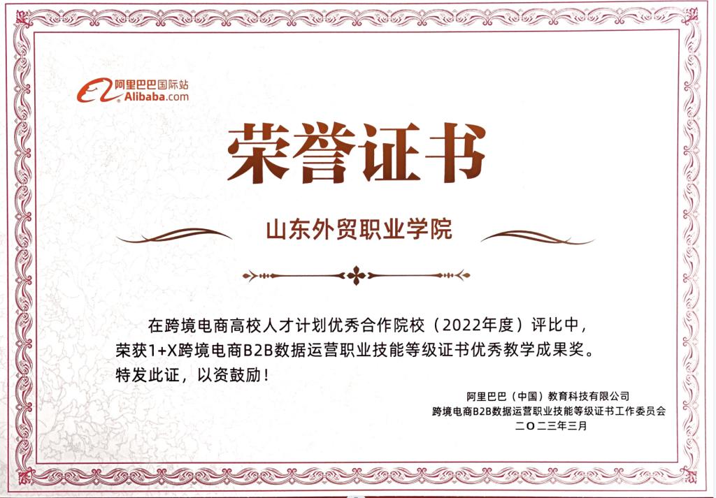 近日,阿里巴巴(中国)教育科技有限公司和跨境电商B2B数据运营职业技能等级证书工作委员会联合发布《关于发布跨境电商高校人才计划优秀合作院校(2022年度)奖项的通知》,伟德喜获2022年度跨境电商B2B数据运营职业技能等级证书优秀教学成果奖及优秀组织奖。张宗英、姜丽丽、张小会等3位教师获评2022年度1+X跨境电商B2B数据运营职业技能等级证书优秀教学成果奖(教师)。据悉,此次优秀教师获评标准为2022年度考证人数和考证通过率综合数据排名前30%的院校及教师。